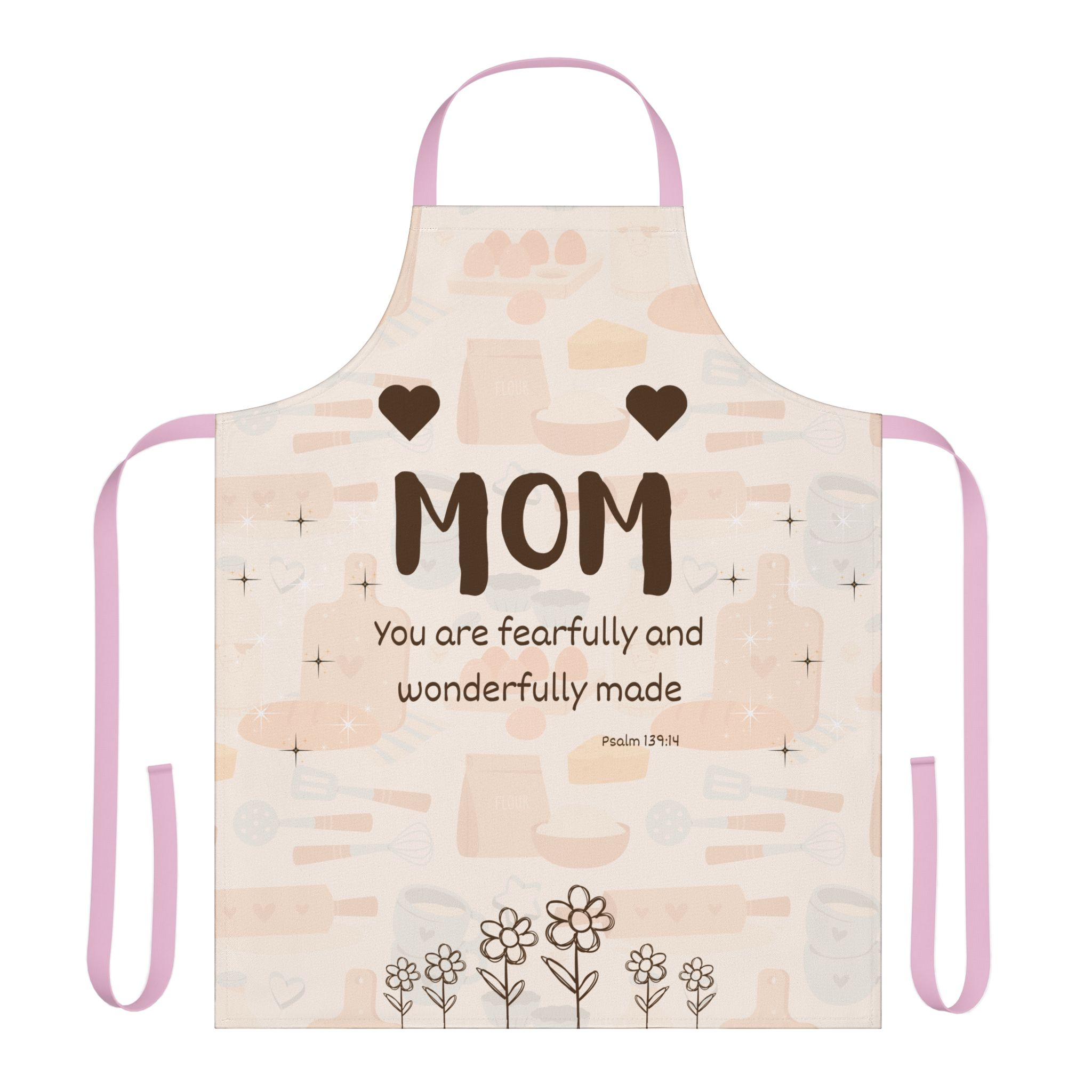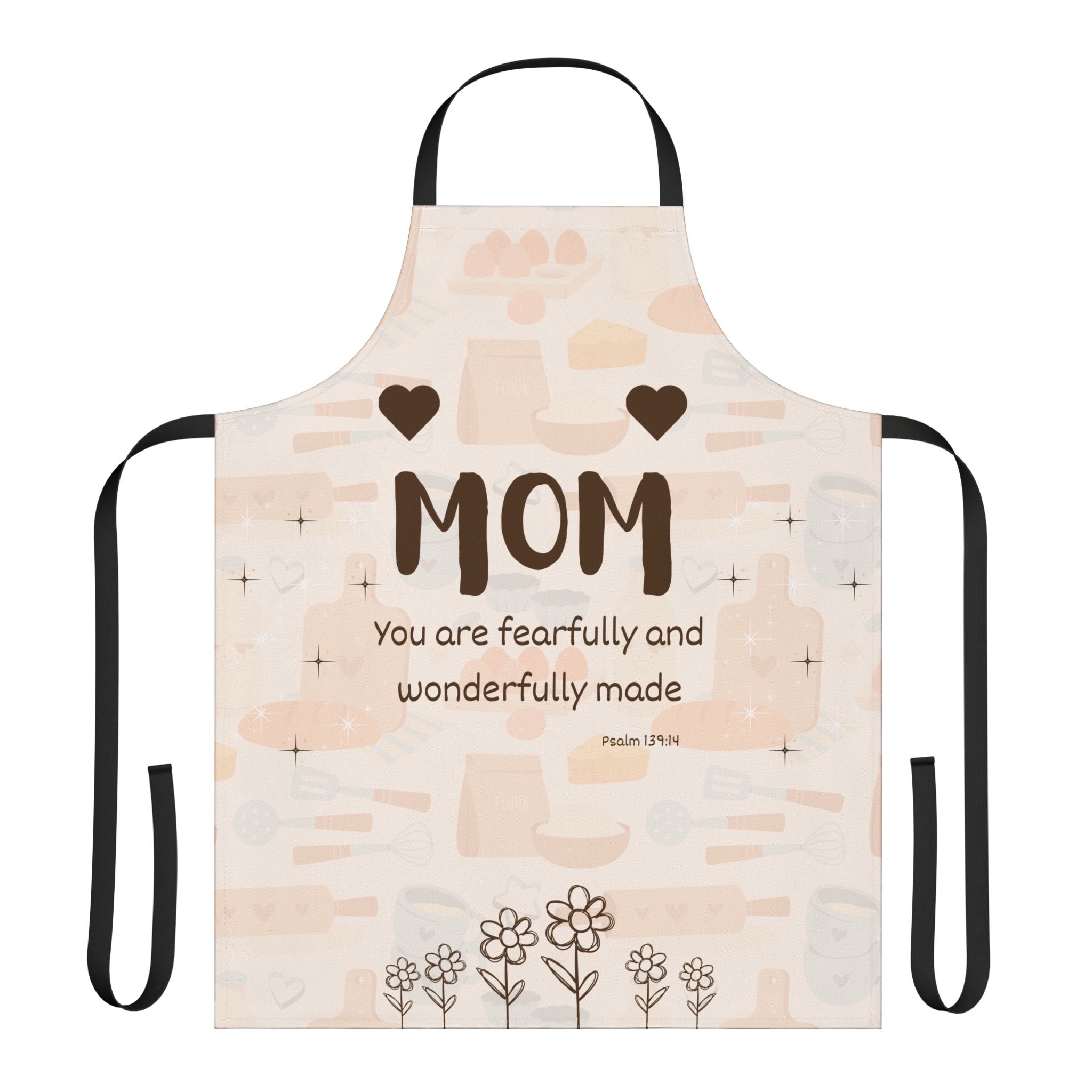 This kitchen apron wraps Mom in a quiet, everyday reminder of worth. Soft polyester canvas with a fine weave and foamed lining sits comfortably as she stirs, chops, or plates, while the gentle script of “You are fearfully and wonderfully made” catches her eye between tasks. The adjustable tie-back lets her set the fit just right; five strap color options—black, white, beige, blue, and pink—let you match her kitchen or her personality. Bright, lasting print keeps the verse clear through washes, and the stain-resistant surface shields her clothes from spills and splatters. It’s a small, tender way to bring faith and appreciation into the flow of her day, whether she’s preparing a family meal or teaching a child to bake.