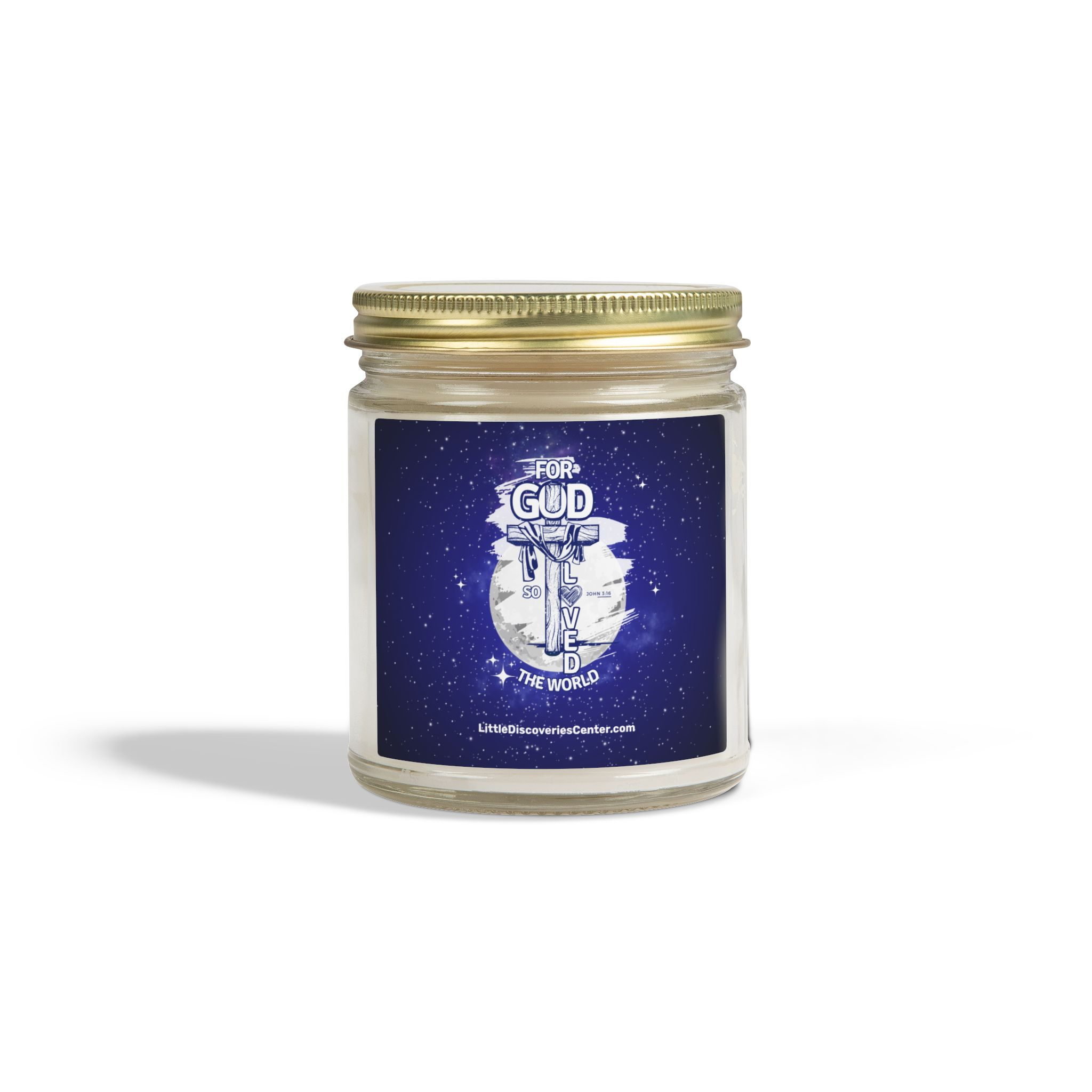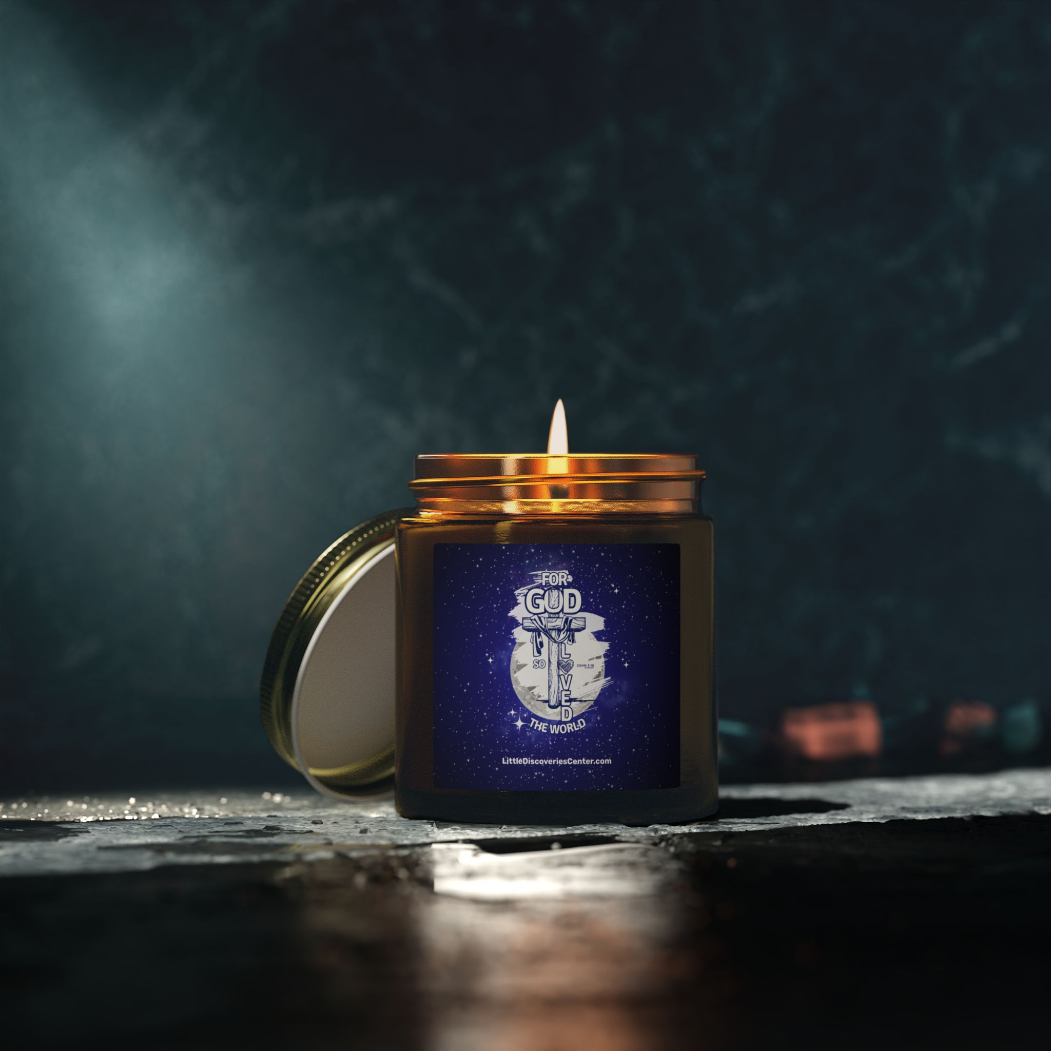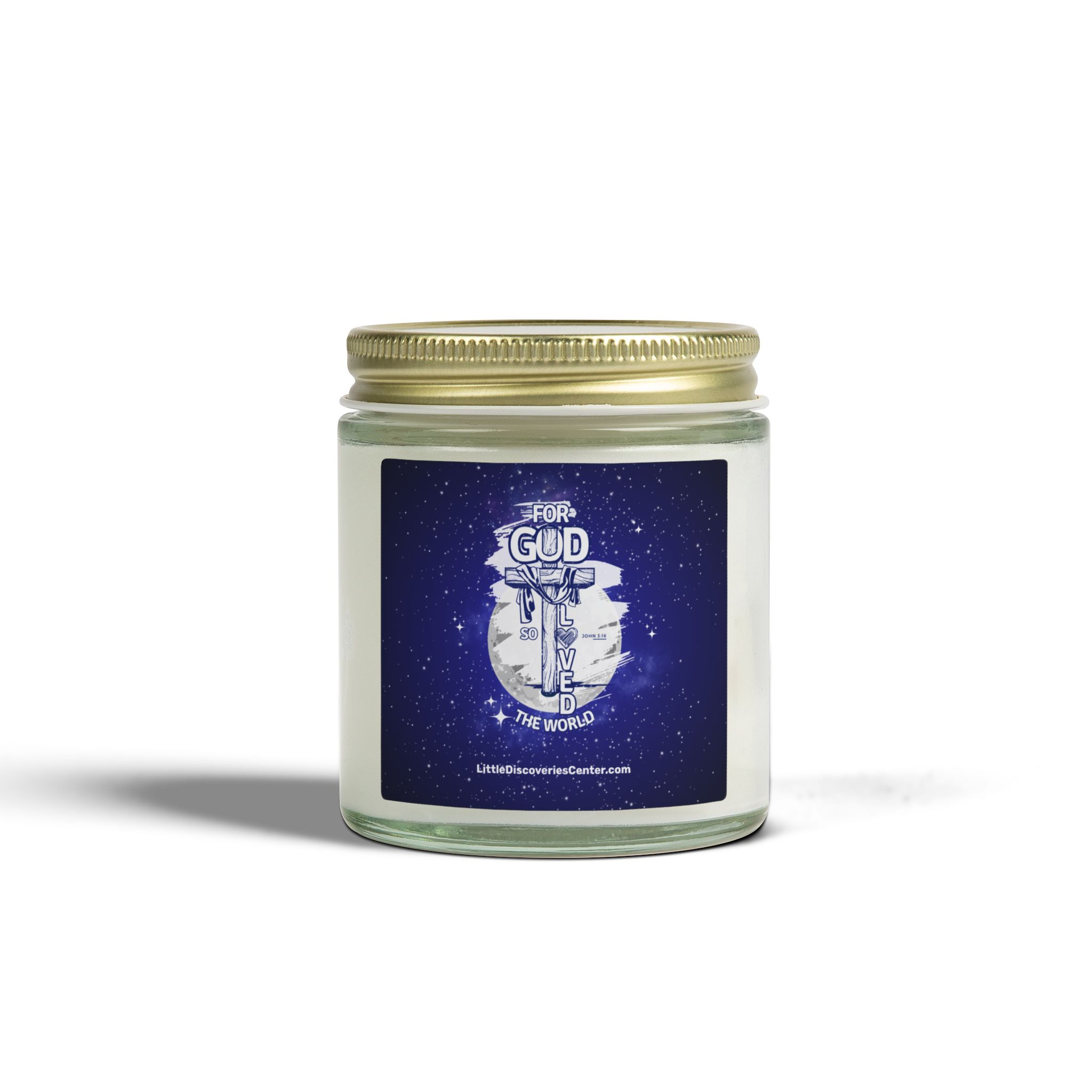 Light this candle and let a quiet pulse of John 3:16 settle the room. Deep blues and soft whites paint a little slice of the heavens on the label — a visual reminder that love stretches beyond walls and schedules. The glow is gentle, the scent chosen to wrap you in calm: a cedar-and-amber embrace, a warm vanilla hush, or a clean citrus breeze depending on the fragrance you select. Each vessel is hand-poured with coconut-apricot wax and a cotton wick, so the flame burns clean while you pray, reflect, or simply breathe. Keep it on your nightstand during evening devotion, place it by the window for Sunday morning stillness, or light it after a long day to recall that you are seen and loved by a vast sky of grace.
